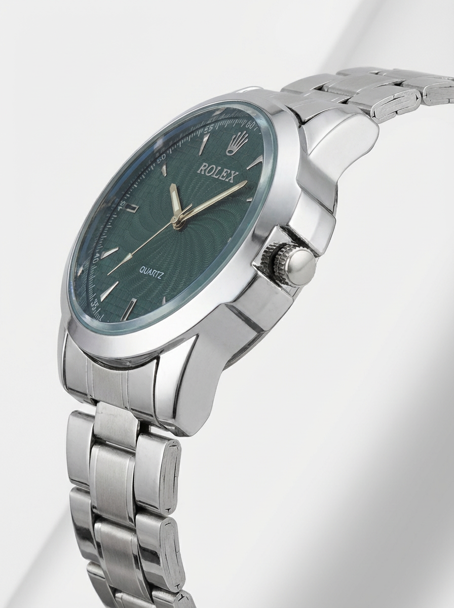 Add a touch of timeless elegance to your look with this Luxury Emerald Green Dial Watch, designed for women and girls who love refined style. The rich emerald green textured dial paired with a sleek stainless steel chain strap creates a perfect balance of beauty and sophistication.